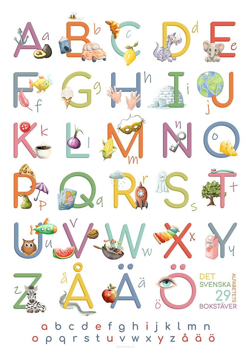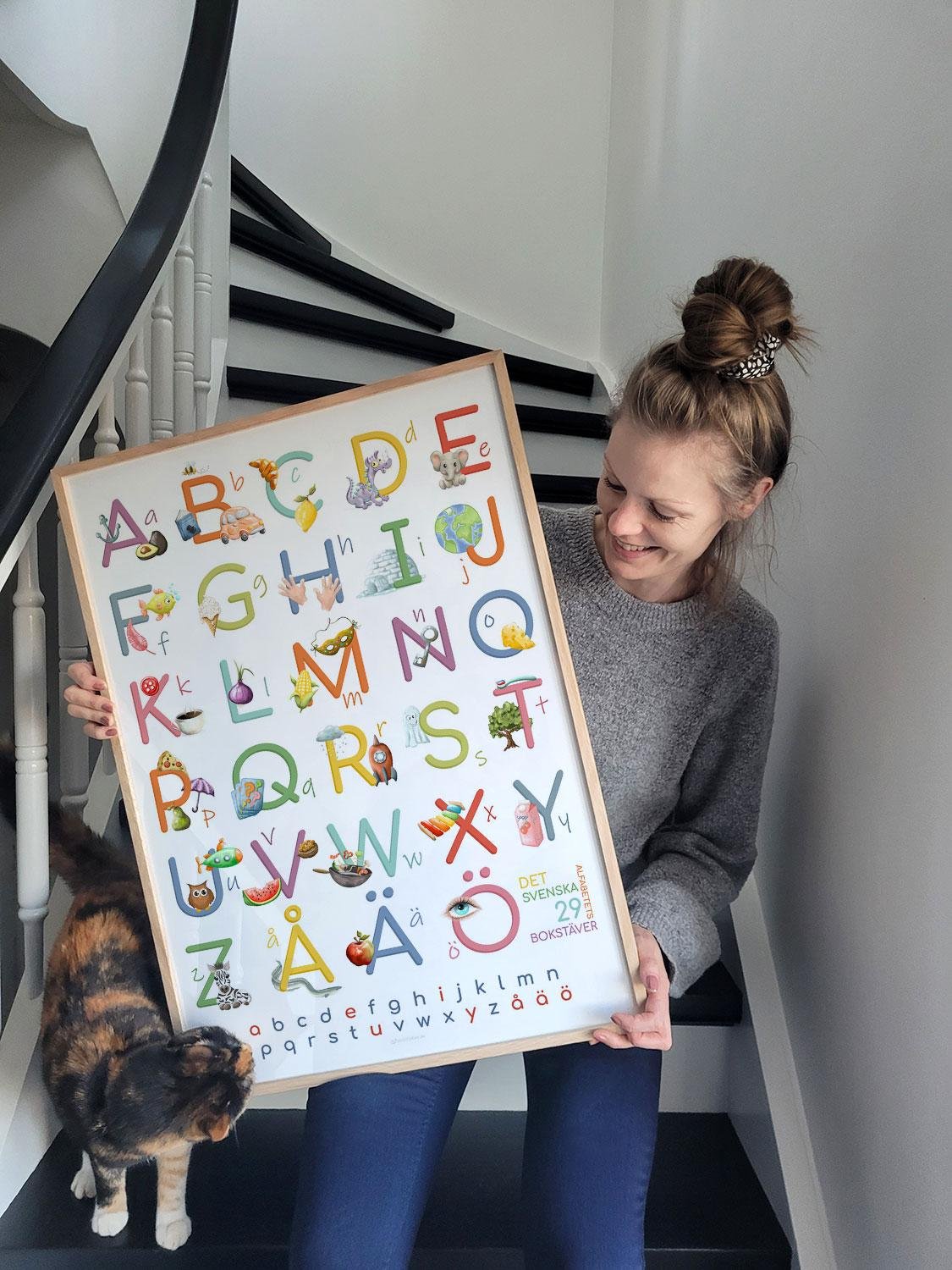 Alfabetplakat med teckningar är några av våra absoluta bästsäljare eftersom de fungerar. Vi vet detta från skolor, forskning och våra kunder, som berättar för oss hur mycket lättare det är för äldre förskolebarn och yngre skolbarn att lära sig (och komma ihåg) bokstäverna när det finns en teckning bredvid varje bokstav. Vår senaste bokstavsplakat har till och med flera handritade illustrationer för många av bokstäverna för att ge så mycket stöd som möjligt.