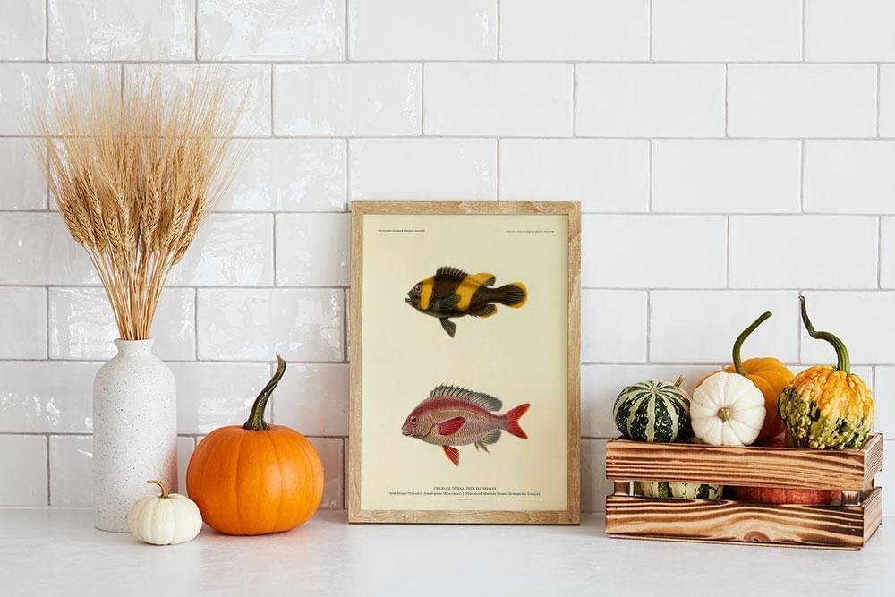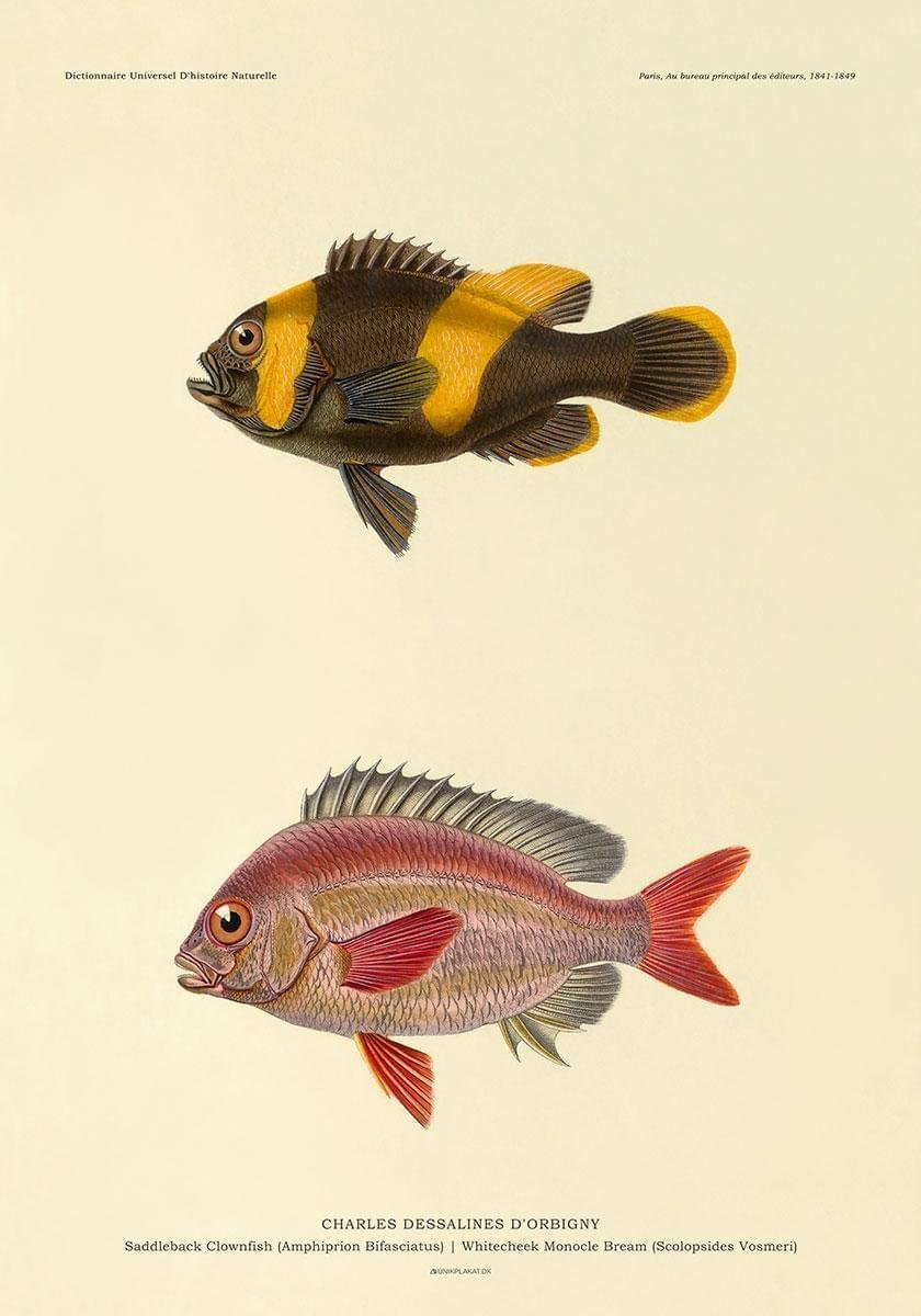 Ännu en vacker illustration av den franske konstnären Charles Dessalines. Denna gång har Dessalines riktat sin uppmärksamhet och sitt konstnärliga talang mot ett par fiskar.