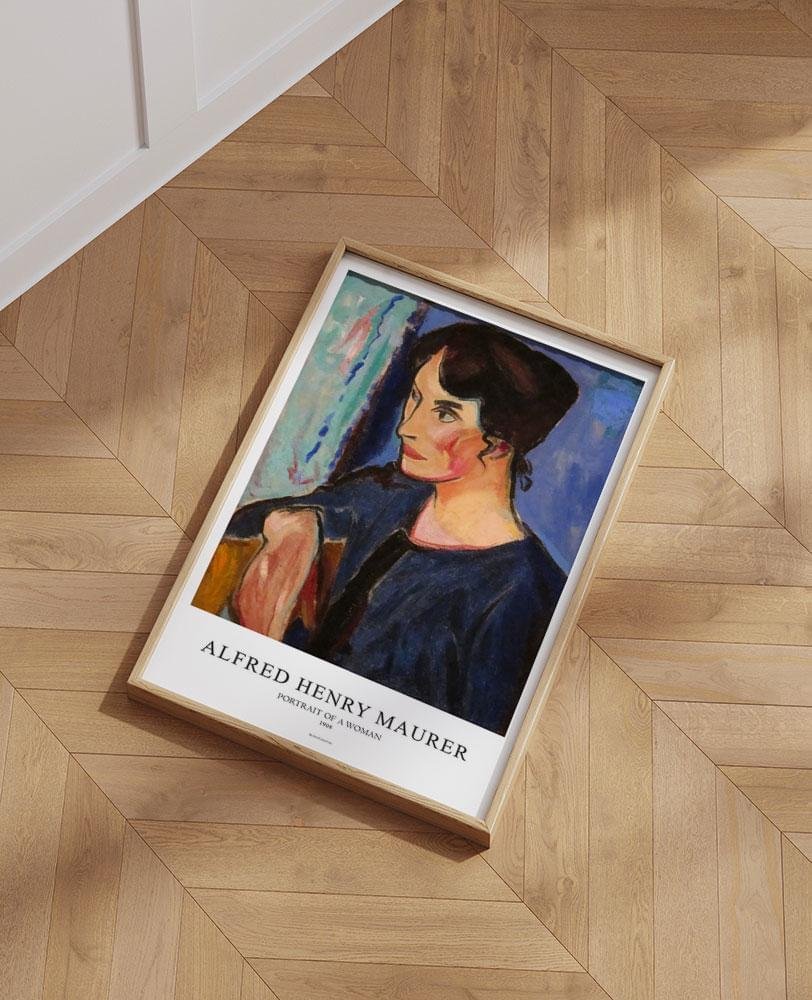 Alfred Henry Maurers målning Porträtt av en kvinna är ett verk i mörkare färger, vilket speglar Maurers intresse för modernistiska trender som användningen av starka färger, förvrängda uttryck och måleri som väcker betraktarens känslor. Målningen föreställer en kvinna med förenklade drag. Färgerna är intensiva och kontrasterande, vilket ger porträttet en nästan abstrakt karaktär. Kvinnans ansikte är målat med breda, djärva penseldrag som betonar Maurers fokus på färgens emotionella kraft snarare än detaljerad realism.