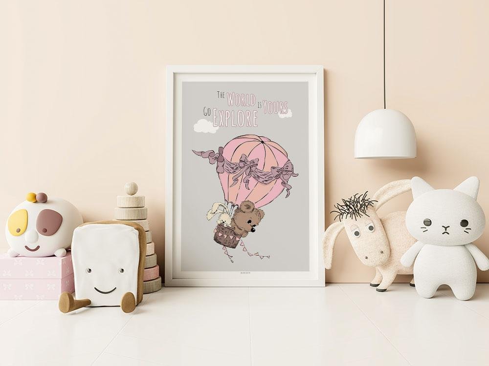 Barnposter – Björn och kanin på promenad