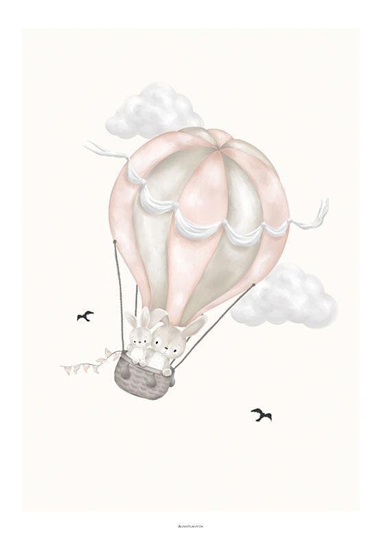 Barnposter – söta kaniner i en rosa luftballong