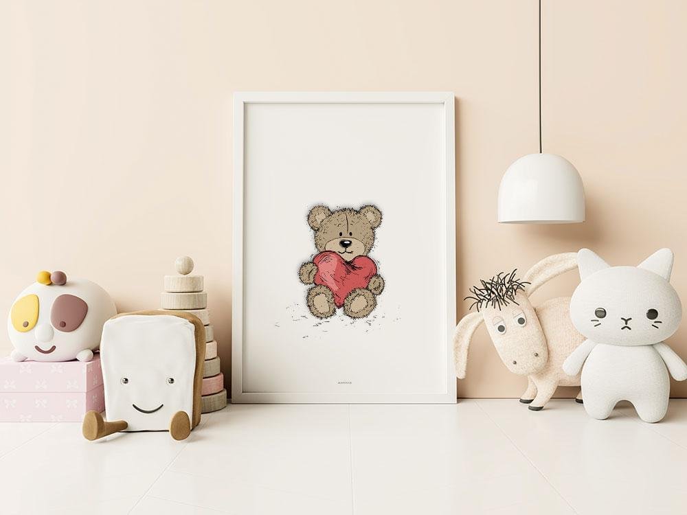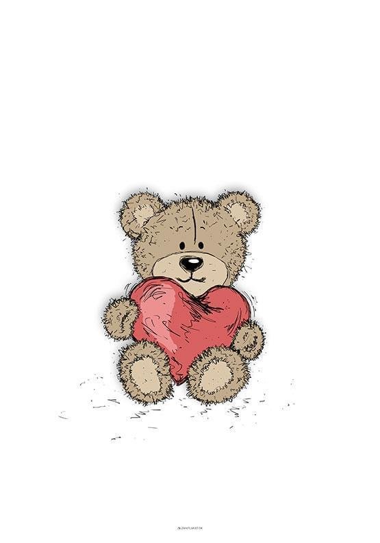 Casual lines nallebjörn med hjärta poster