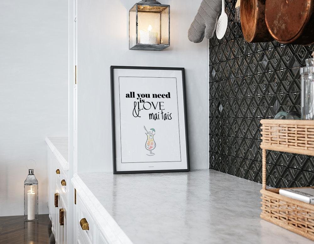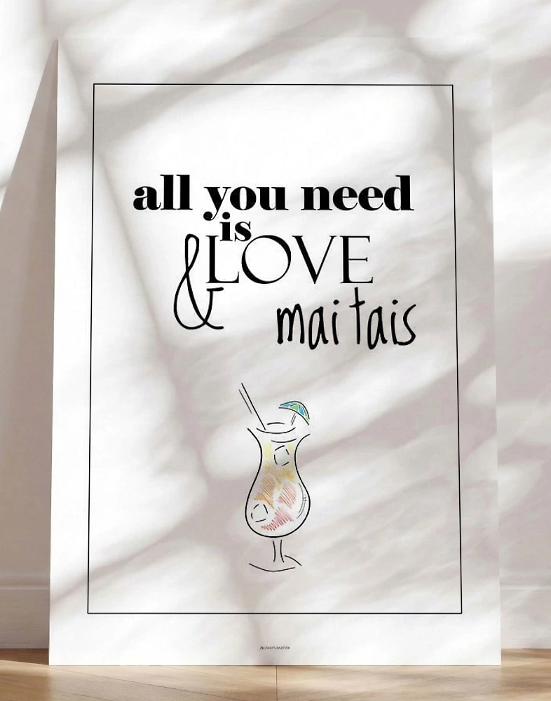 En Mai Tai är en vacker solnedgång i ett glas. Njut av den på stranden, i trädgården eller i vardagsrummet medan din nya drinkposter hänger i köket.