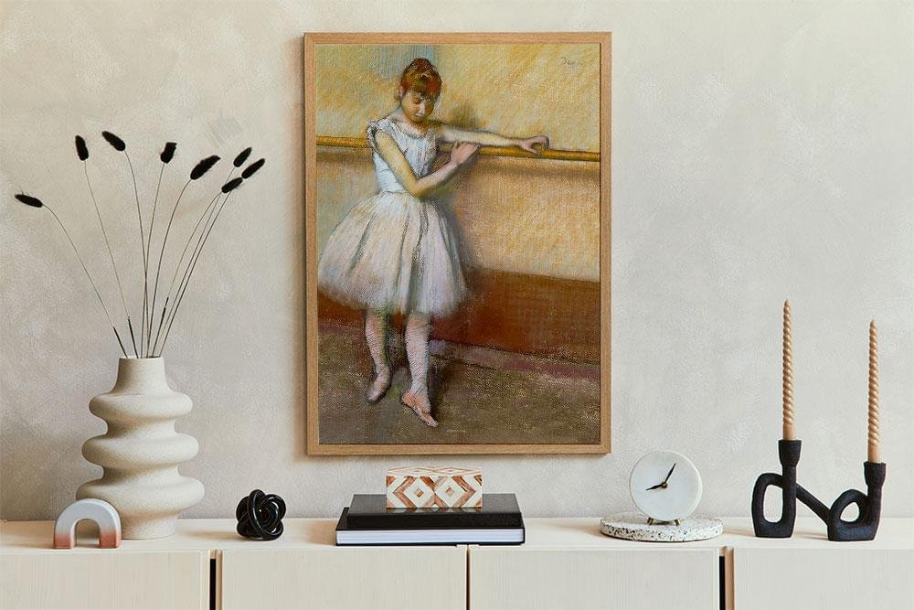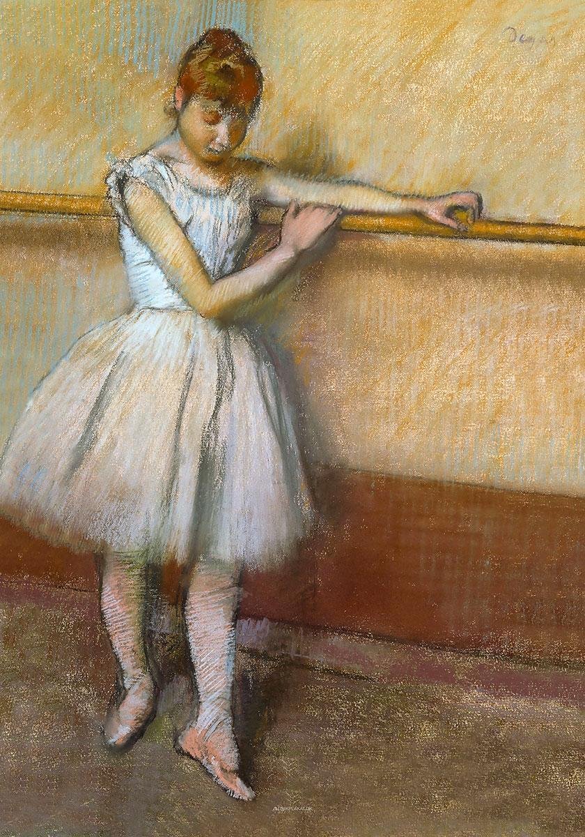 Den graciösa, vita ballerinan Danseuse à la Barre är en pastellteckning av Edgar Degas. Originalet är från omkring 1877. Restaurerad och tryckt som affisch.