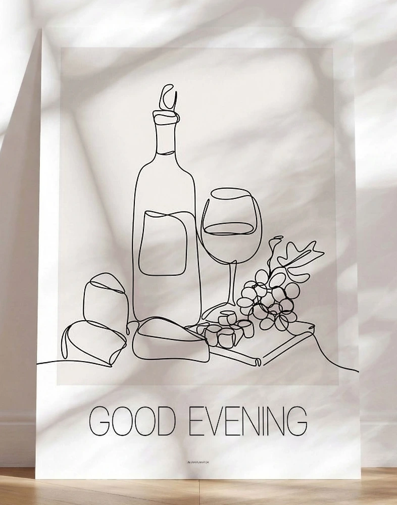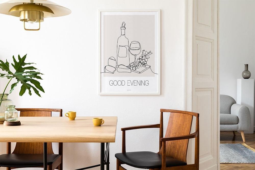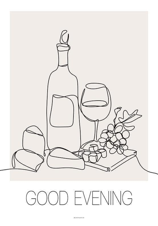 Enradig affisch med vin och ost – Good evening