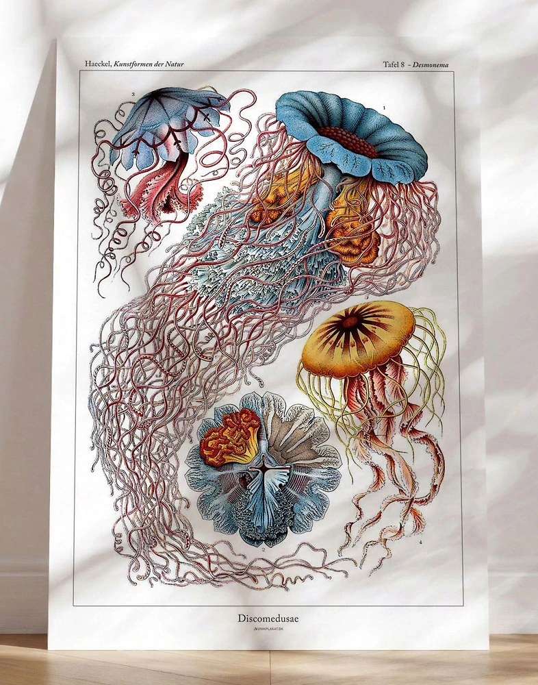 Ernst Haeckel – Discomedusae – uppslagsverksaffisch med maneter