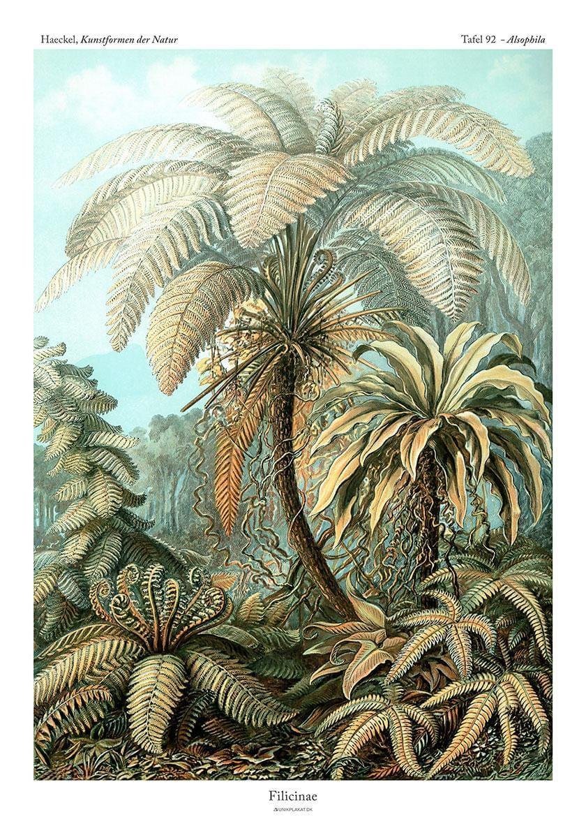 Denna ormbunke skapades av Ernst Haeckel och har en härlig tropisk känsla. Det beror troligen på att ormbunken liknar en palm i utseendet, men i själva verket är ormbunkar och palmer ganska olika, biologiskt sett. Det spelar dock ingen roll, eftersom vi här bara är intresserade av den underbara känslan av urskog och värme.