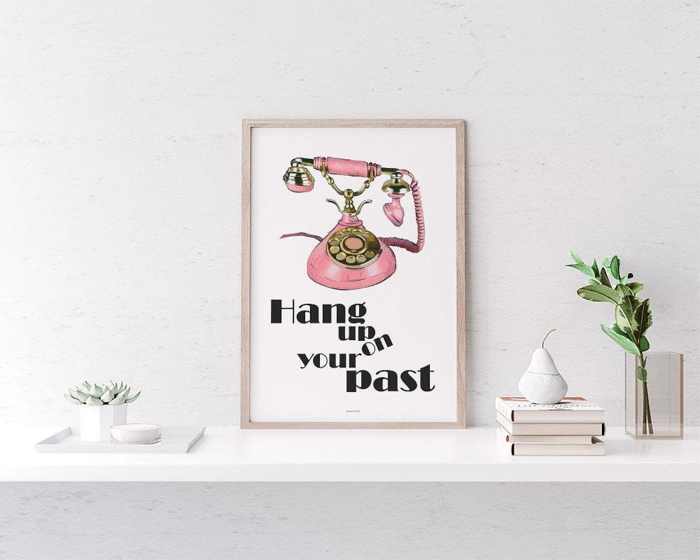 En smart poster med en handritad telefon av den lite äldre typen som man inte lätt hittar plats för i fickan.