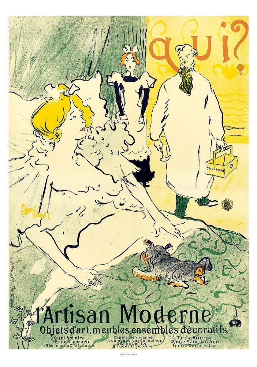 L'artisan Moderne av Henri de Toulouse-Lautrec från 1894 var egentligen tänkt att vara en reklamaffisch för designern André Marty, som sålde prydnadssaker och dekorativa föremål för hemmet på olika platser i Paris. Toulouse-Lautrecs affisch har dock mycket liten relevans för den verksamhet den marknadsför. Varför? Jo, därför att Toulouse-Lautrec istället väljer att underhålla betraktarna med något som är lite oanständigt.