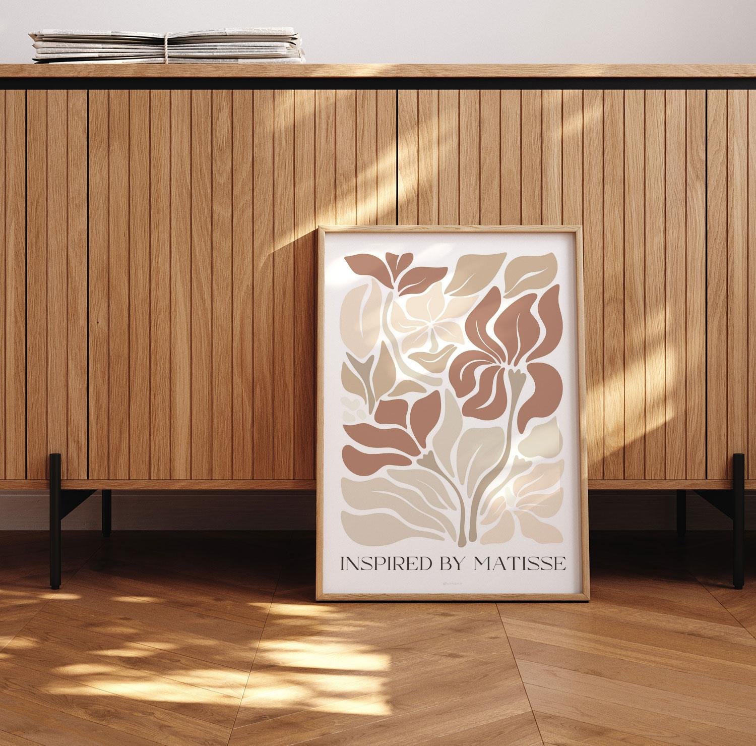 Blommorna på denna Matisse-affisch är inspirerade av de utklipp som du säkert känner till från den franske papperskonstnären. Blommorna är dock lite mer flytande och deras färger är också lite mer dämpade än den färgpalett som Henri Matisse ofta föredrog för sin kartong innan han klippte i den.