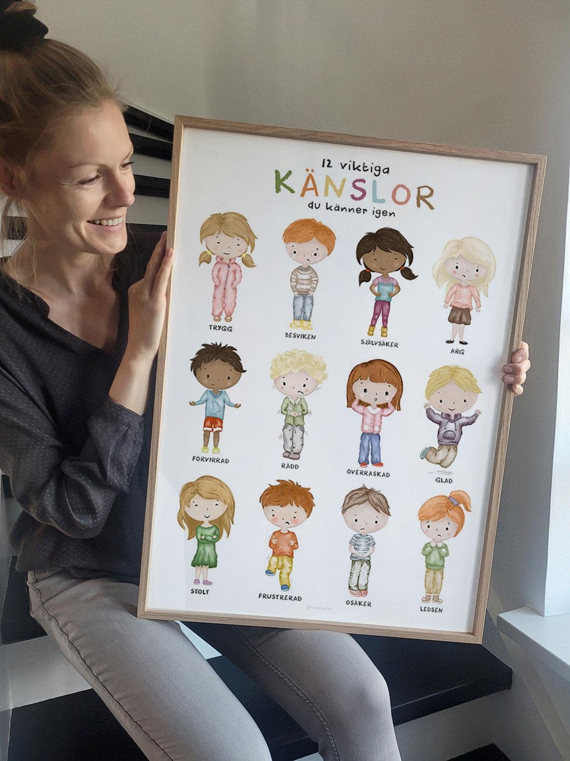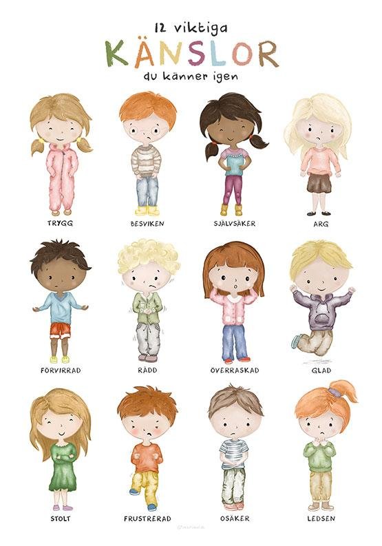 En känsloaffisch kan användas som ett verktyg för att prata om de sprudlande, glada känslorna men också – inte minst – de tunga och svåra. Att se en teckning av ett barn som visar en viss känsla gör det lättare att förstå och våga vara i den. Affischen är tänkt att visa att alla känslor är okej. När man förstår sina egna känslor bättre och kan sätta ord på dem blir det också lättare att hantera de känslor som är svåra att bära inom sig.