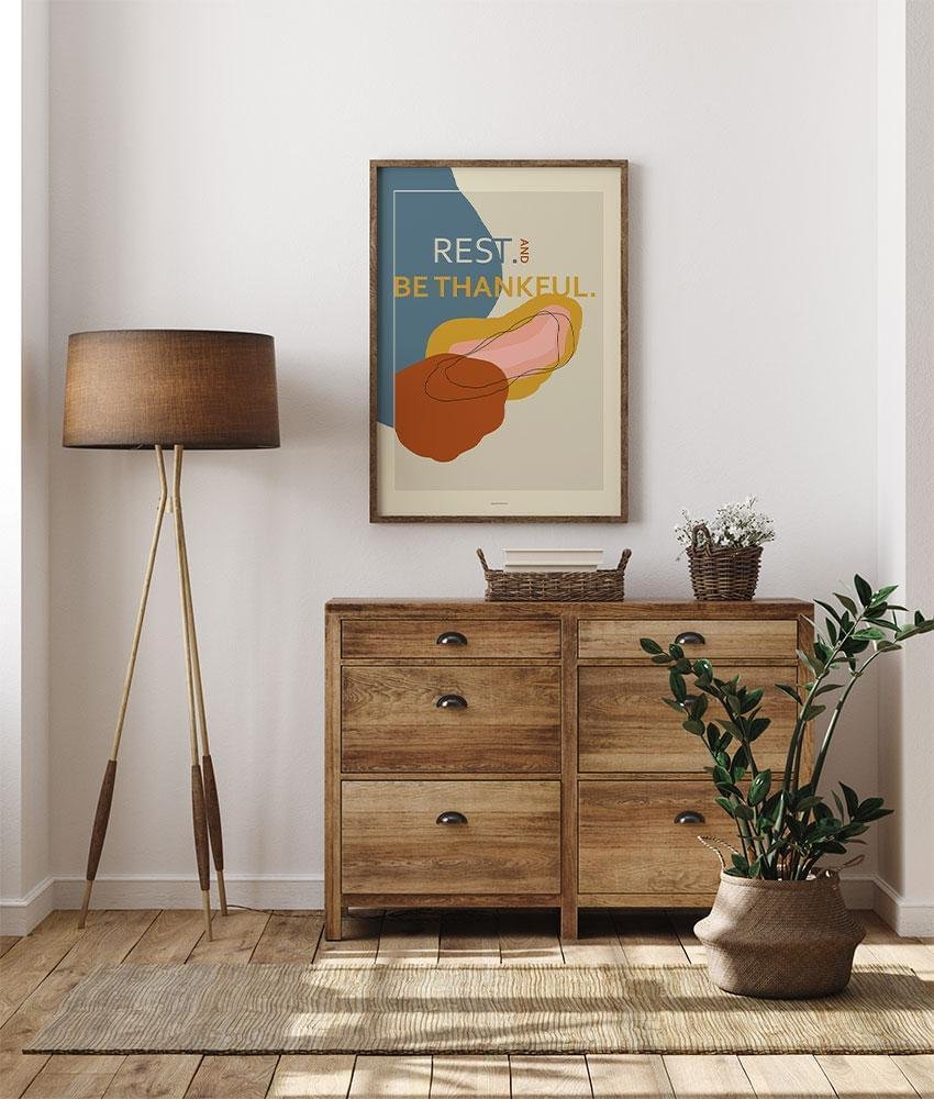 Häng upp en samling väl valda och lugna färger på väggen och låt denna moderna konstposter påminna dig om att ta dig tid att vila och vara tacksam för allt det goda i ditt liv.
