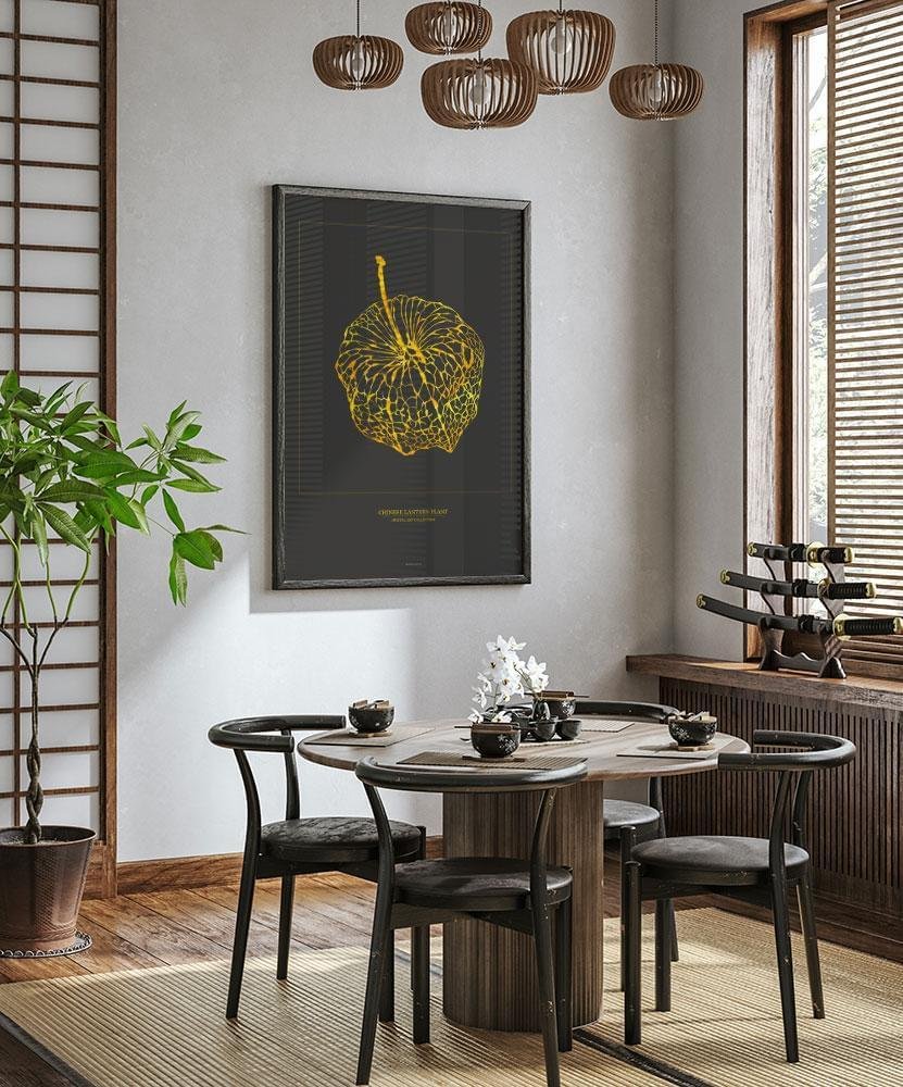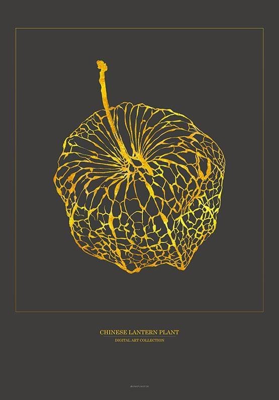 Konstposter med grafisk guldeffekt – Chinese Lantern Plant