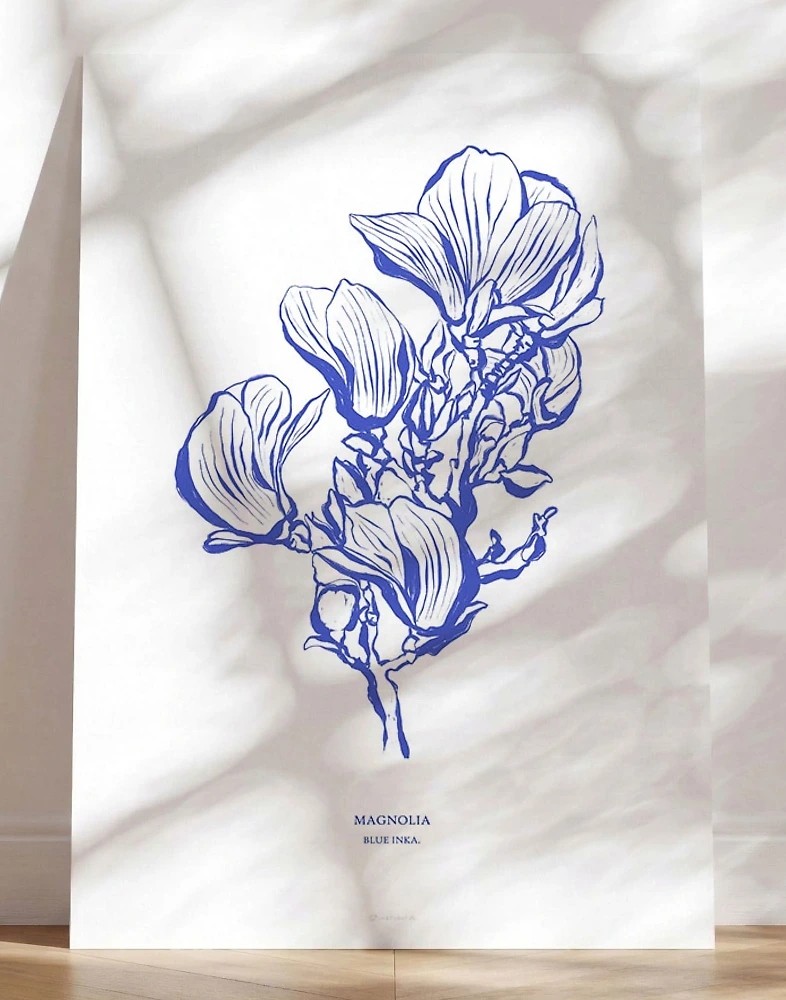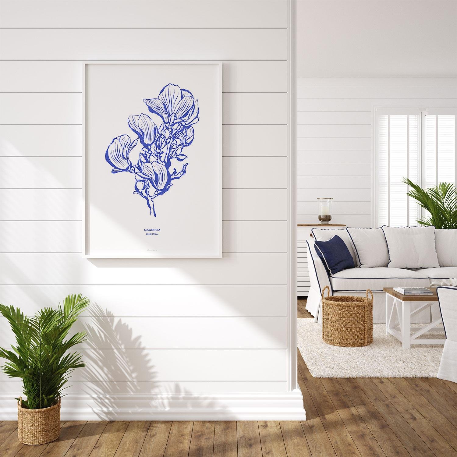 Den vackra magnolian i blom passar fint i ett minimalistiskt vardagsrum, eller kanske i ett ljust och mysigt sommarhus.