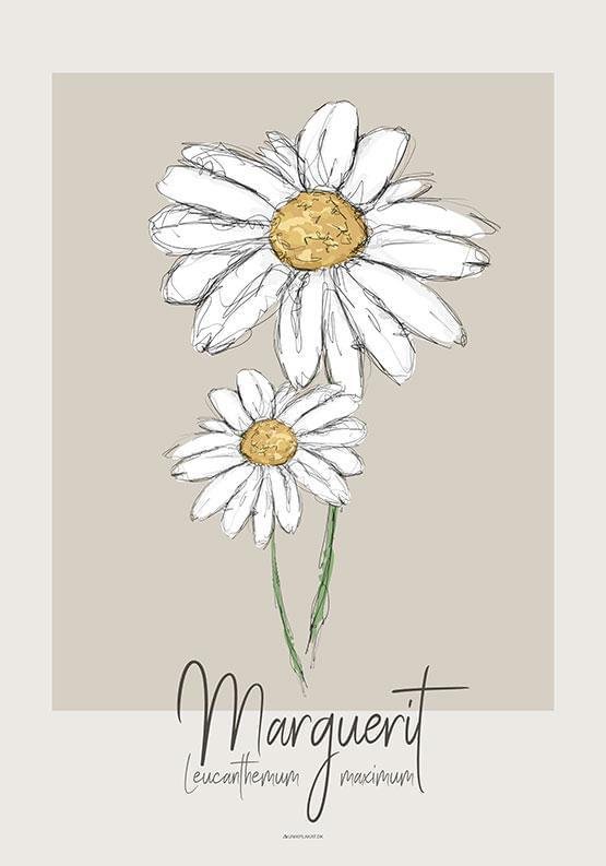 Vacker konstposter med en skiss av två prästkragar. Danmark har ingen riktig nationalblomma, men om det hade funnits en officiellt skulle det definitivt vara prästkragen.