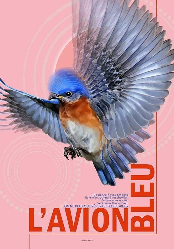 När din vägg klarar av starka färger och du är lite förtjust i uttrycksfulla posters, kan den här vara något för dig. Den vackra blå fågeln är en digital kolteckning med massor av detaljer. Fågeln ackompanjeras vackert av den franska dikten som jag hittade av en slump för länge sedan. Jag vet inte vem som skrev den eller var jag hittade den. Men den är vacker och betyder något i stil med: