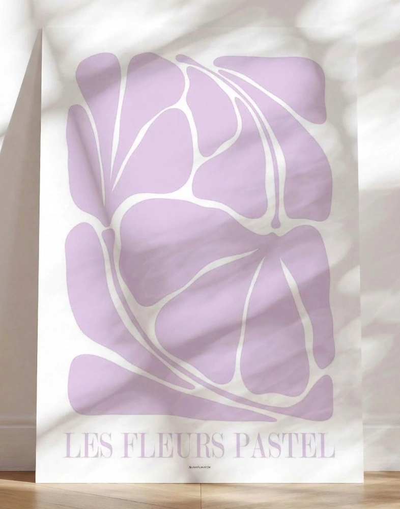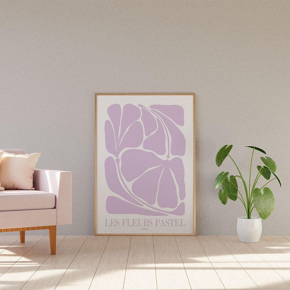 Les fleurs pastel – grafisk konstaffisch i ljuslila