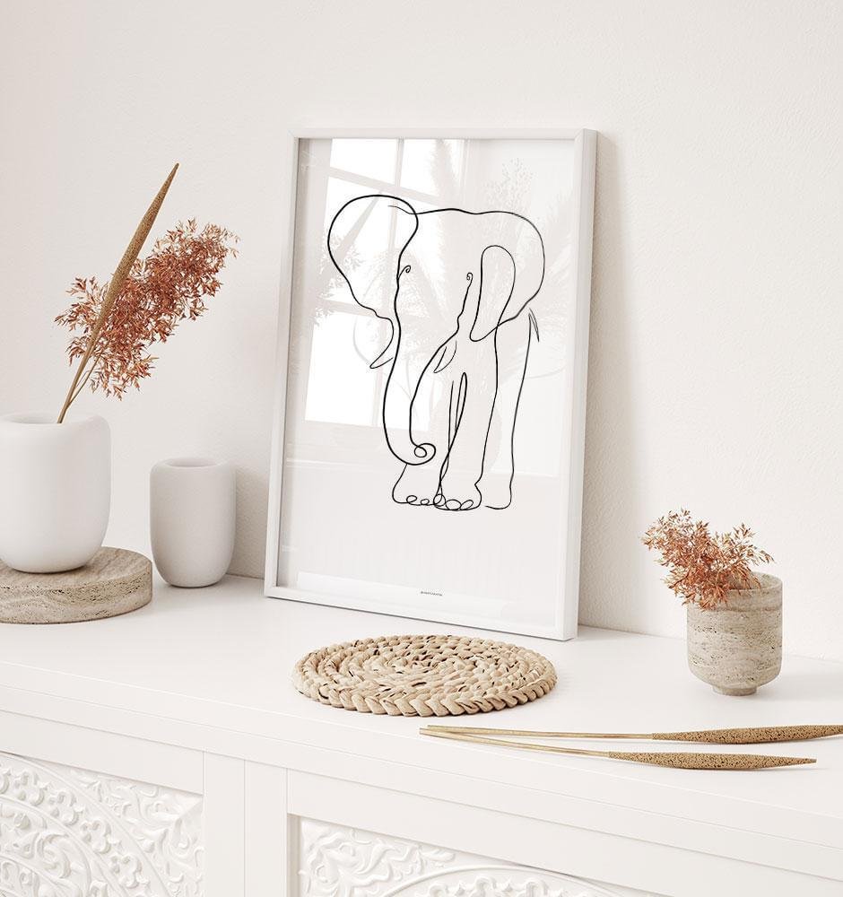 Häng upp en bit av den afrikanska savannen i ditt vardagsrum med denna fina linjeteckning av en elefant. Postern finns även i stora storlekar om du har en vägg och ett rum som behöver ett magnifikt motiv.