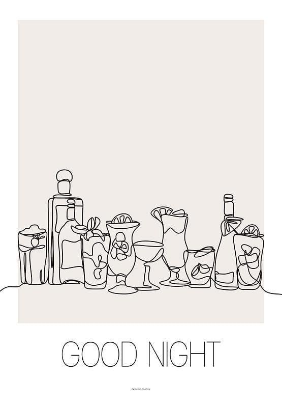 Linjeteckningsaffisch med cocktails – Good night