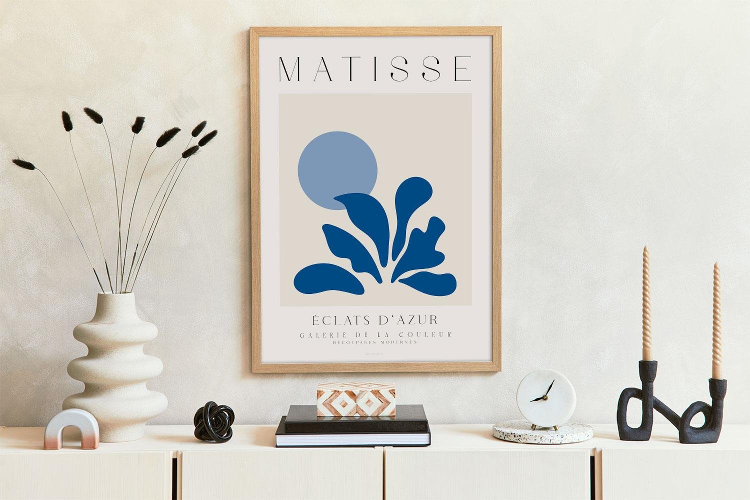 Den blå Matisse-affischen passar perfekt i vardagsrummet, vid matbordet eller i sovrummet, där de blå nyanserna och den rena grafiska layouten fångar ögat utan att distrahera.