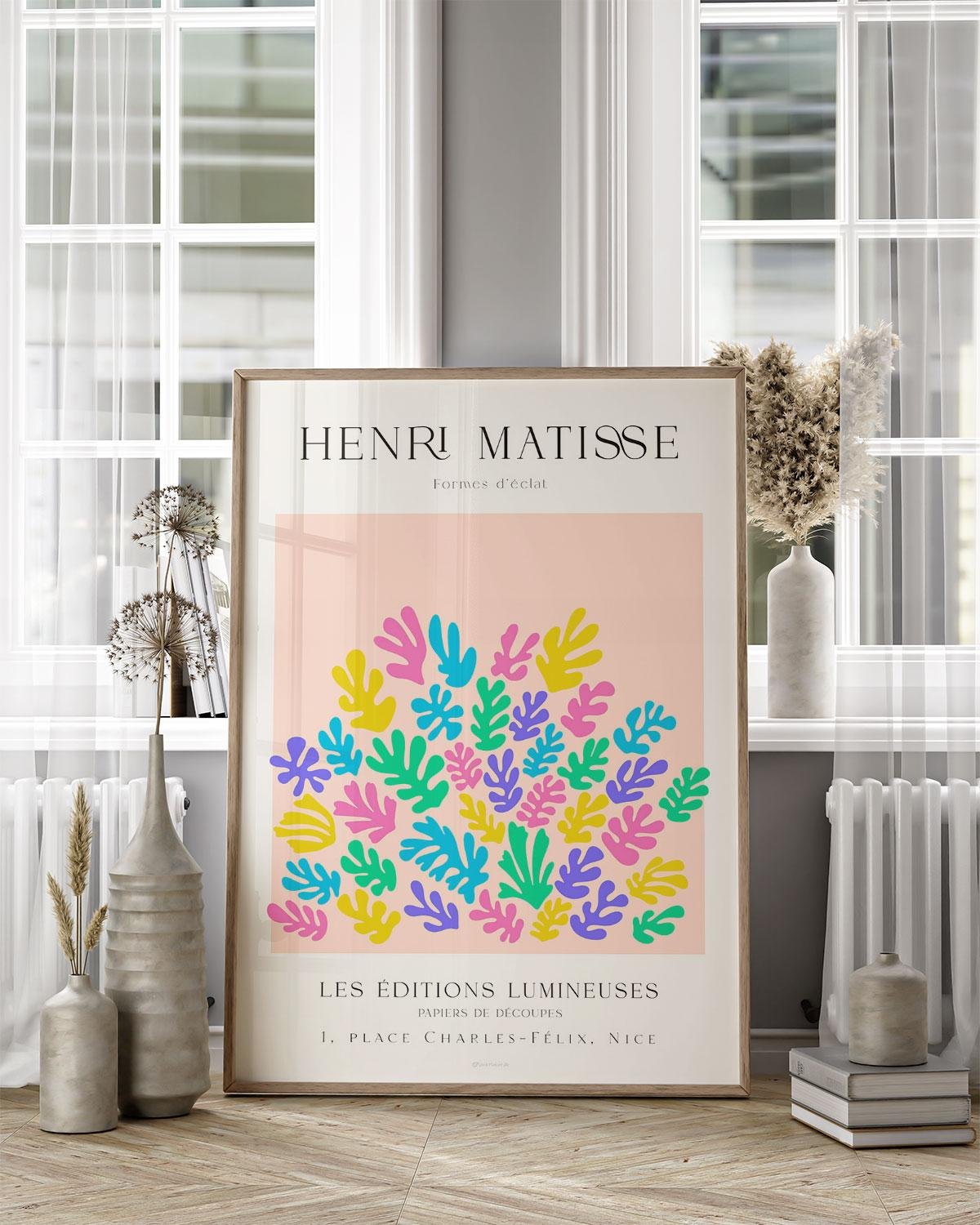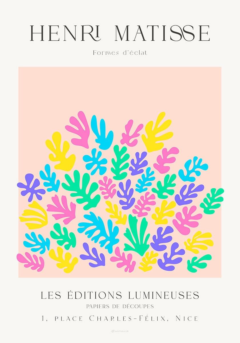 Matisse-affisch med Henri Matisses klassiska korallformade utklipp i olika färger.