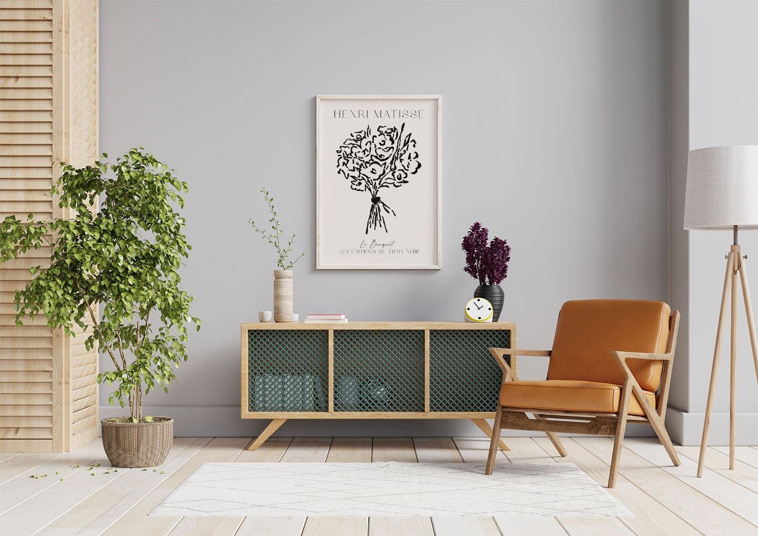 Matisse är känd för sina färgglada målningar, som han skapade tidigt i sitt liv. Användningen av djärva färger och grova penseldrag var ren galenskap, enligt samtida konstkritiker. Sedan har vi hans berömda klippkonst, som anses vara Matisses viktigaste bidrag till den konstnärliga metoden. Men mellan penseldragen och saxklippen gjorde Matisse ett antal skisser som också hyllar form och liv. Denna bukett, en klassisk Matisse-skiss, är en av dem.