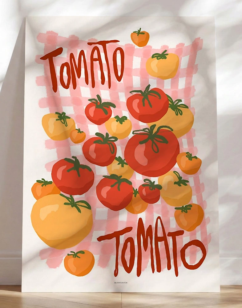 Du kan köpa dem hackade, skalade och puréade på burk. Du kan köpa dem färska och krispiga, och du kan köpa dem soltorkade. Mums. Använd dem i såser, på pizza, i bröd och sallader, eller ät dem direkt från plantan. Och varför inte hänga dem på väggen? Det är upp till dig – tomat, tomat.