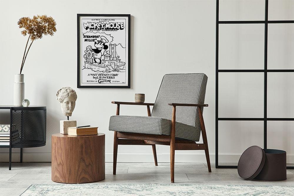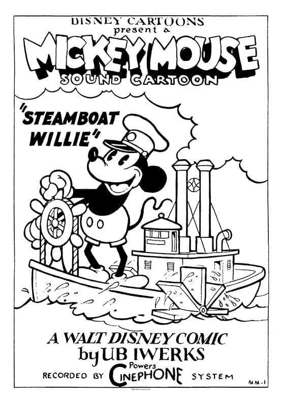 Affisch för Steamboat Willie med allas favoritmus.