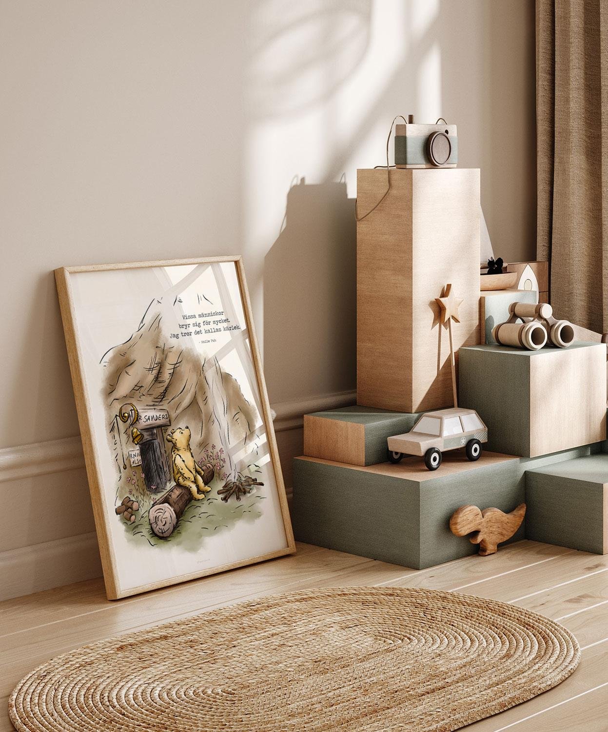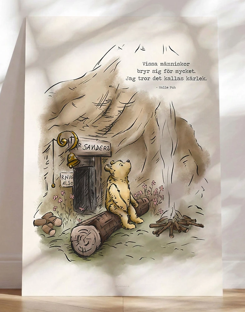 Nalle Puh-poster med ett fint citat om det som ofta ligger bakom stor oro för andra – att vi älskar dem djupt. En varm och tankeväckande poster som passar perfekt i barnrummet, lekhörnan eller som en kärleksfull detalj i hemmet.