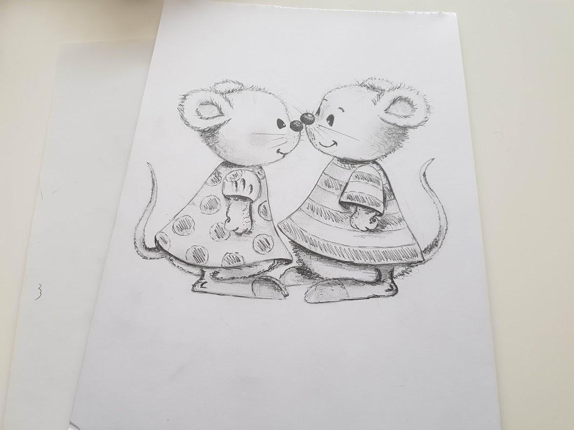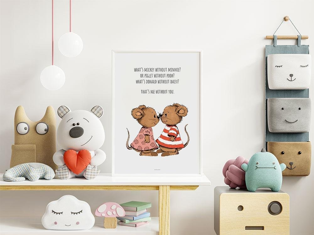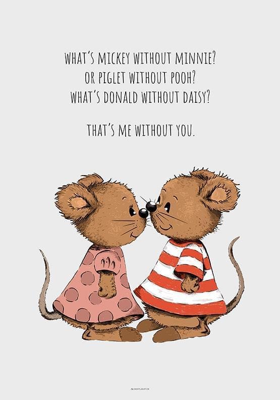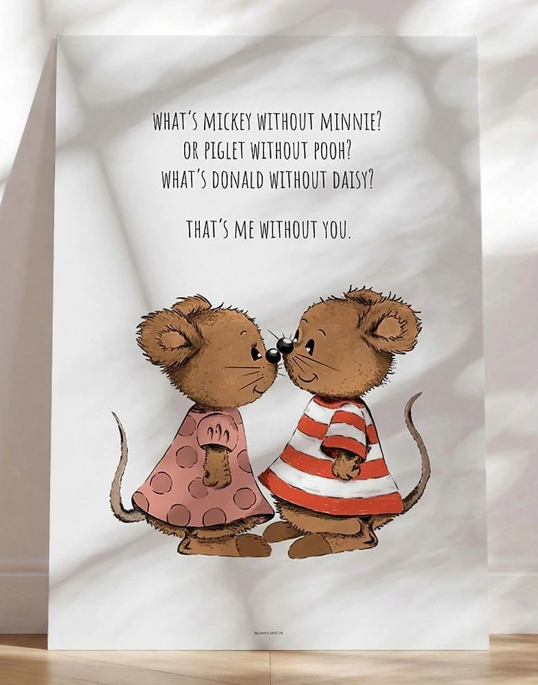 De två musvännerna på affischen är bara en av de många handritade illustrationer vi gör själva. Den är unik och finns inte tillgänglig någon annanstans.