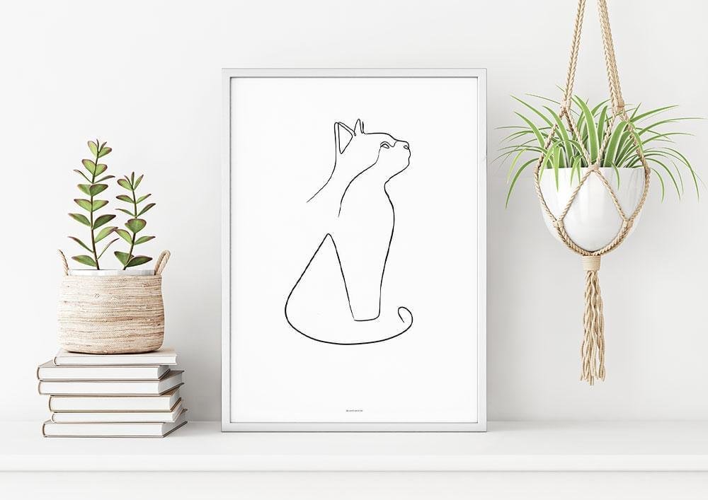 One line drawing – Poster med katt