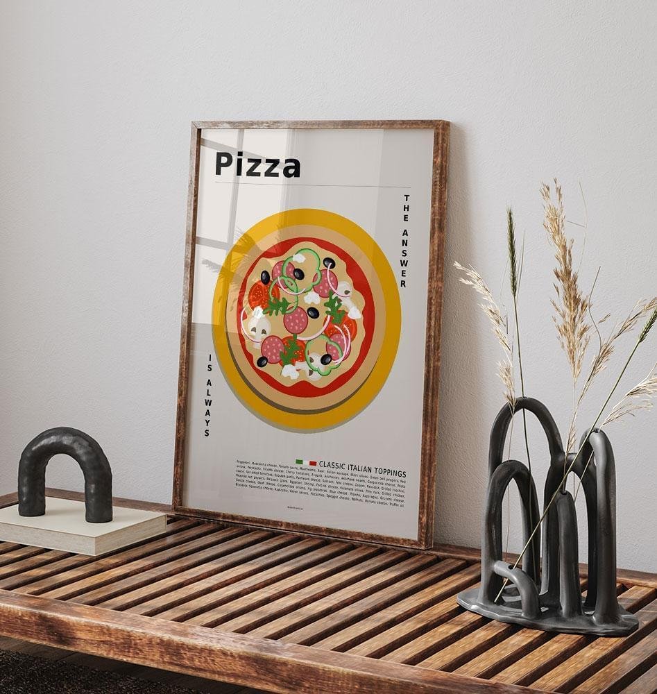 Cool retroaffisch med läcker pizza, som alltid är en favorit, oavsett om den serveras till frukost, lunch eller middag.