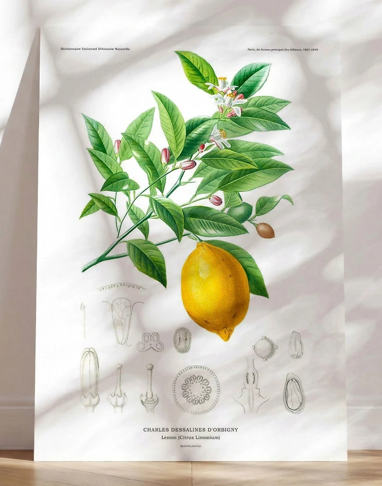 Charles Dessalines d'Orbigny är konstnären bakom denna något kända citronillustration. Citronen kommer från verket Dictionnaire universel d'histoire naturelle, ett uppslagsverk som publicerades i mitten av 1800-talet i en serie volymer.