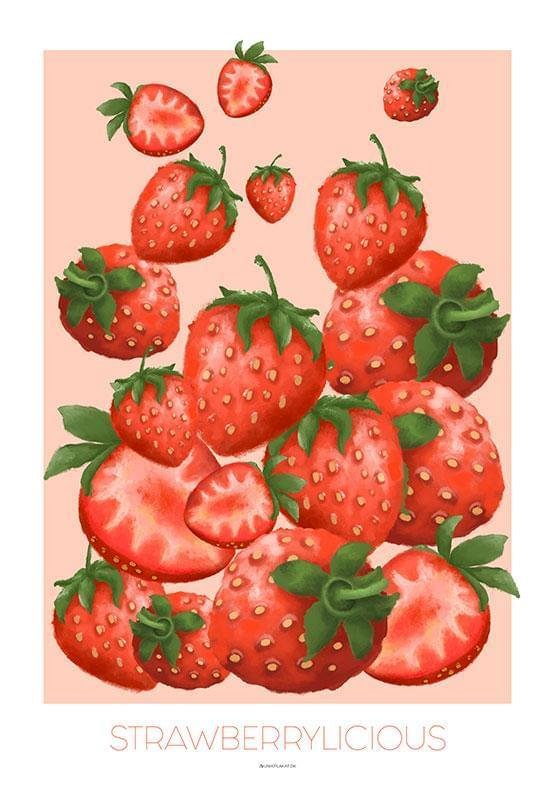 Strawberrylicious – Färgglad affisch med jordgubbar