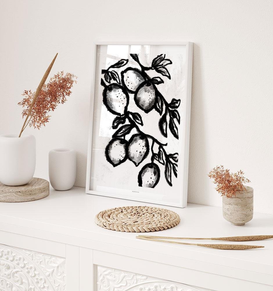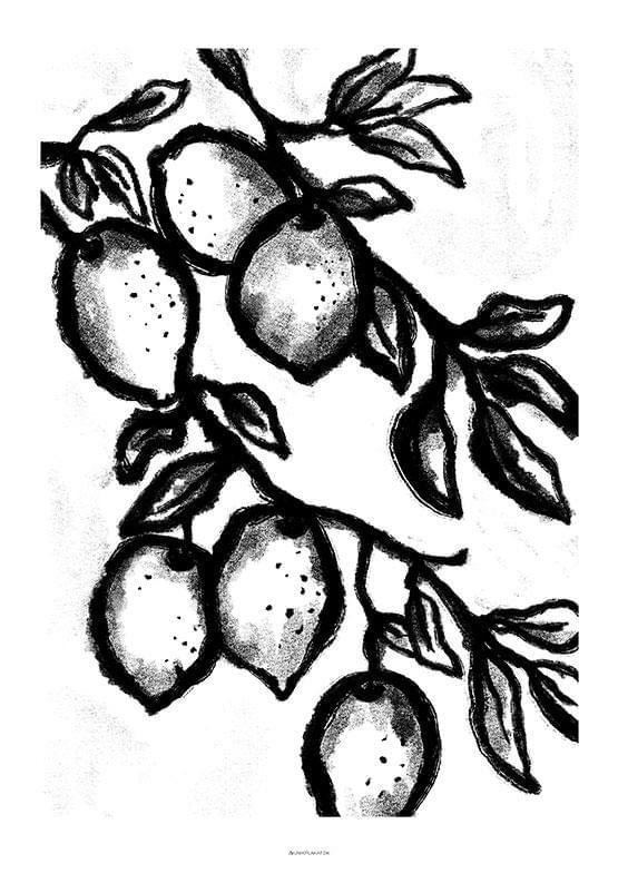 Svartvit affisch – kolteckning av en citrongren